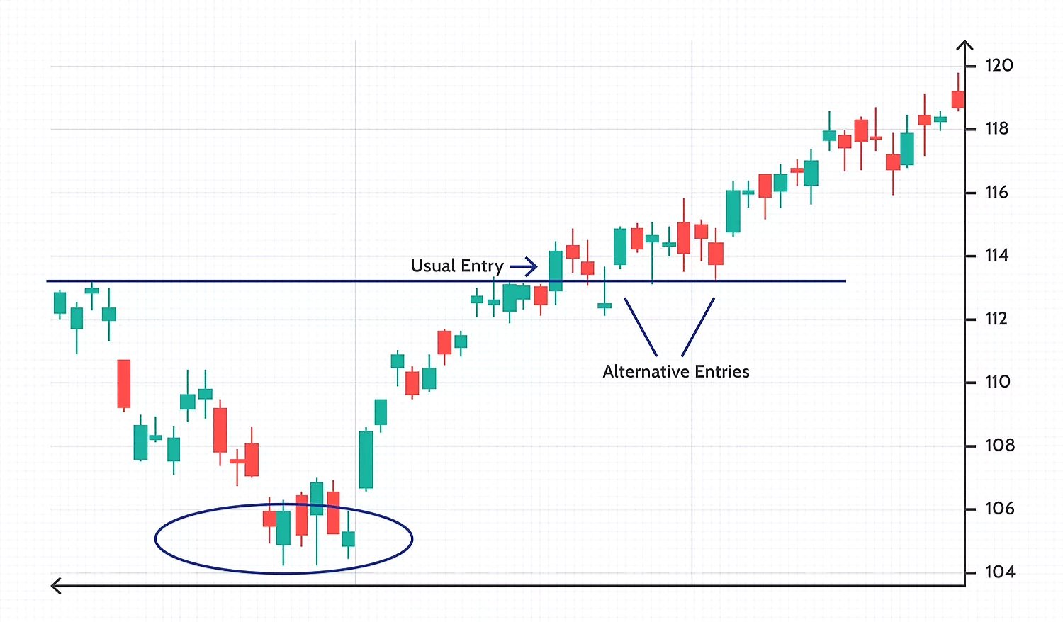 تتطلب نقطة دخول أخرى مزيدًا من الصبر وتأتي مع احتمالية تفويت الحركة تمامًا. تتضمن هذه الطريقة انتظار الانسحاب إلى خط العنق بعد حدوث الاختراق بالفعل. هذا أكثر تحفظًا لأنه قد يتم تفويت الصفقة إذا استمر السعر في التحرك في اتجاه الاختراق ويمكننا أن نرى ما إذا كان الانسحاب سيتوقف ويستأنف اتجاه الاختراق الأصلي.