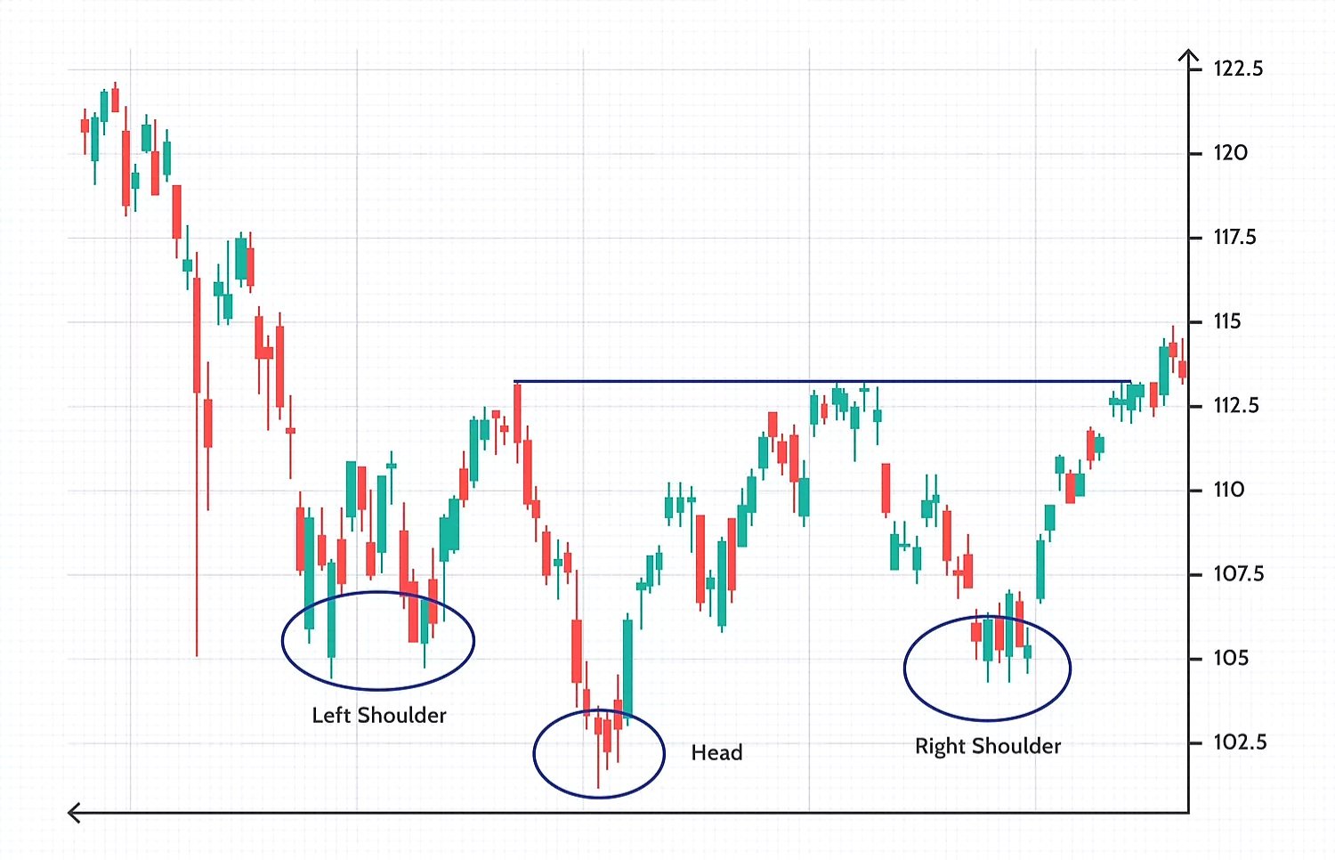 تشكل نموذج الرأس والكتفين المعكوس عند قاع السوق: