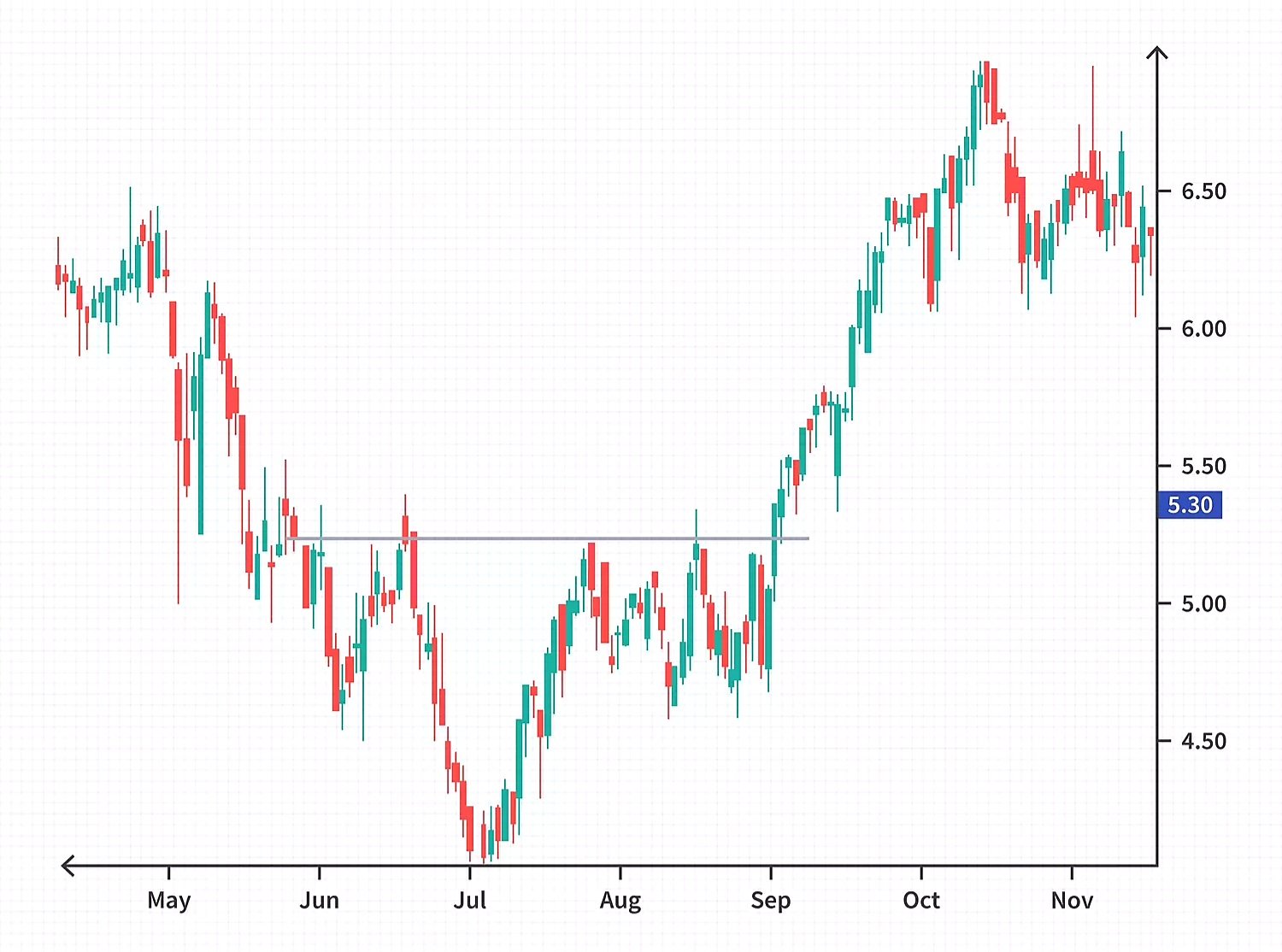 • يسعى المحللون الفنيون ورسامو الرسوم البيانية إلى تحديد الأنماط للتنبؤ بالاتجاه المستقبلي لسعر الأمن.