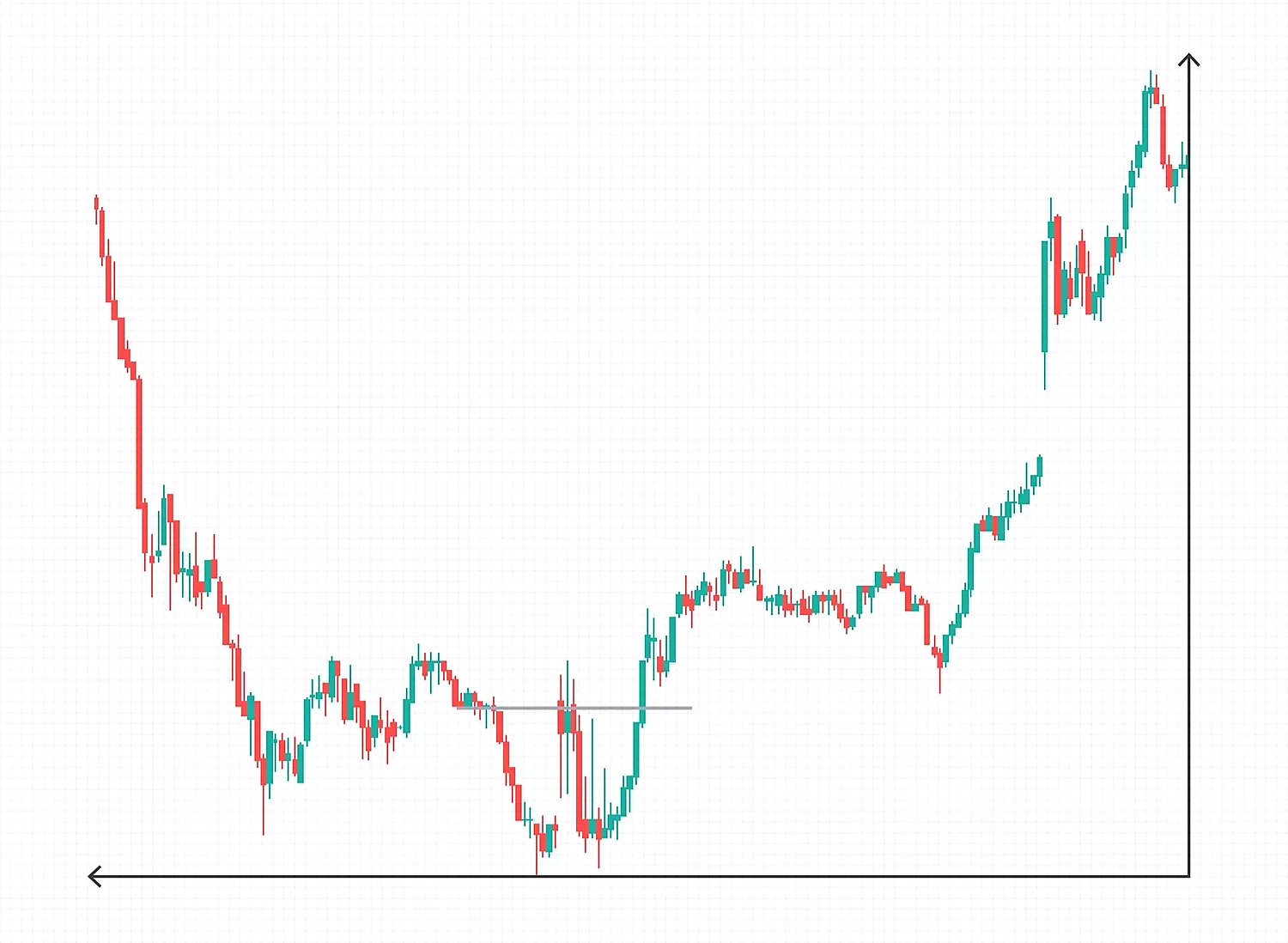 • يحدث التوحيد ، أو السوق الجانبي، عندما يتذبذب السعر في نطاق بين خطي اتجاه متوازيين وأفقيين في كثير من الأحيان.