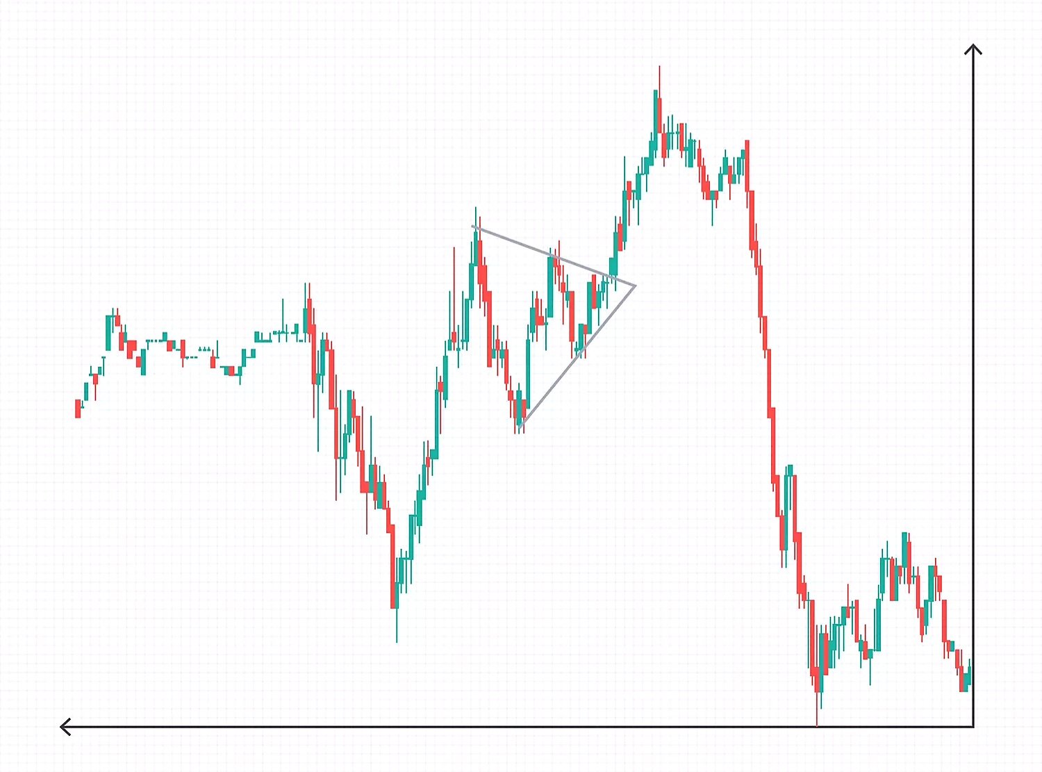 المثلث الهابط هو عكس المثلث الصاعد، مما يشير إلى أن الطلب يتناقص، ويشير خط الاتجاه العلوي الهابط إلى احتمال حدوث انهيار.