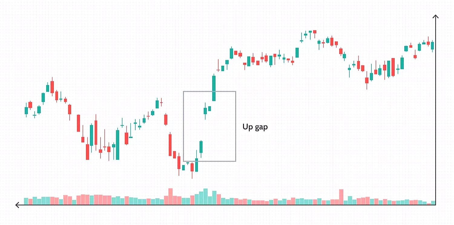 الفجوات هي أنماط عكسية. تحدث عندما تكون هناك مساحة بين فترتين للتداول بسبب زيادة أو انخفاض كبير في السعر. على سبيل المثال، قد يغلق السهم عند 5.00 دولار ويفتح عند 7.00 دولار بعد أرباح إيجابية أو أخبار أخرى.