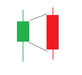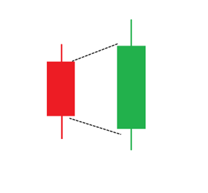 يُشار إليه بنمط الالتهام الصاعد عندما يظهر في نهاية اتجاه هبوطي ونمط الالتهام الهابط بعد اتجاه صعودي.