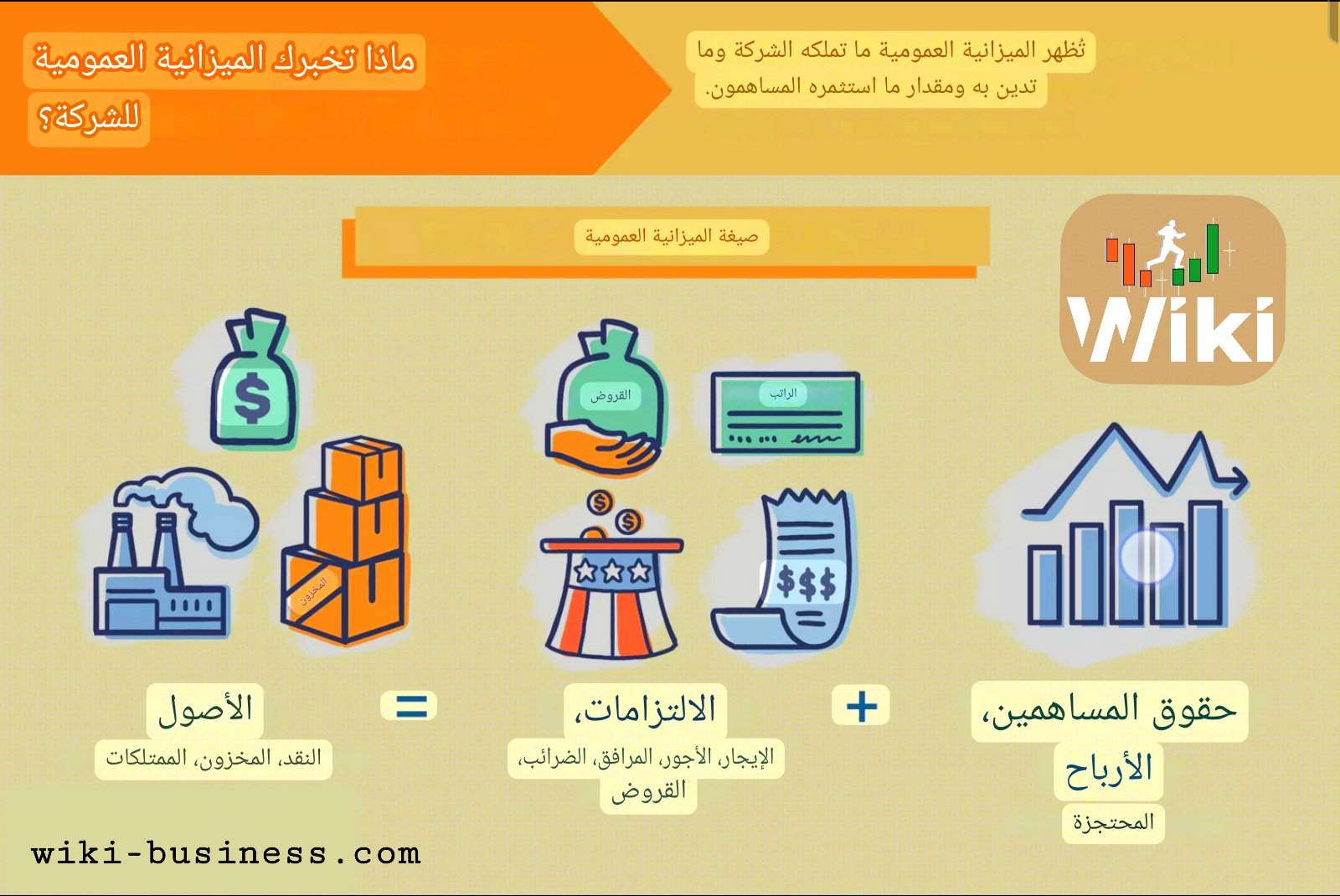 الميزانية العمومية هي بيان مالي يوضح أصول الشركة، والتزاماتها، وحقوق المساهمين.