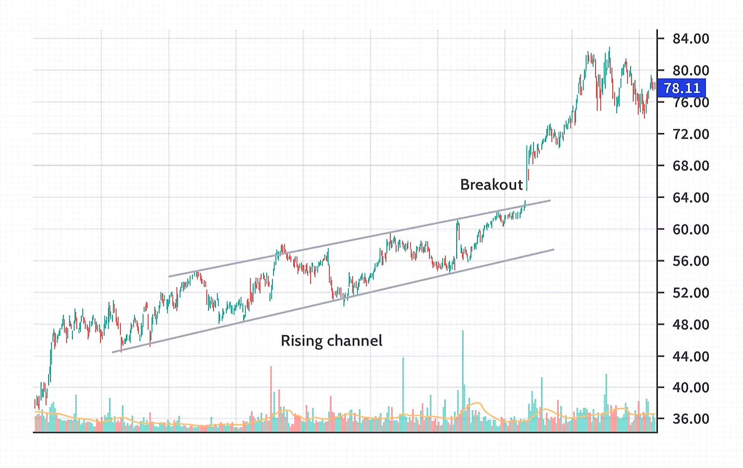 توفر القنوات طريقة واحدة للشراء والبيع عندما يتحرك السعر بين خطوط الاتجاه . من خلال “تغليف” حركة سعر السهم بخطين متوازيين، يمكن تقدير إشارات البيع والشراء، بالإضافة إلى مستويات وقف الخسارة والهدف.